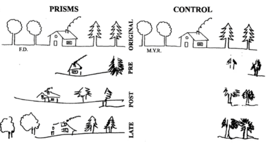 For my PhD research in Dr. Woolrich’s lab, I will be applying the HMM to MEG data on subjects performing prism adaptation, a sensorimotor task that is used to treat a disorder of visual perception known as hemineglect. Patients with hemineglect lose awareness of one half (typically the left half) of their visual field, usually as a result of right hemisphere stroke. When performing prism adaptation, patients wear prism goggles that shift their whole visual field to the right by 10 degrees. Initially, patients point too far to the right when they are asked to point to a target stimulus (e.g. a dot), so they have to make a leftward correction to their motion (Fig 7). Over a number of trials, patients learn to realign their motor behavior with their altered visual perception. Remarkably, prism adaptation is able to restore awareness of the patient’s visual field. As seen below (Fig 8), when patients are asked to recreate a drawing, they are now able to fill in the entire picture, whereas they were previously only able to sketch the right side.